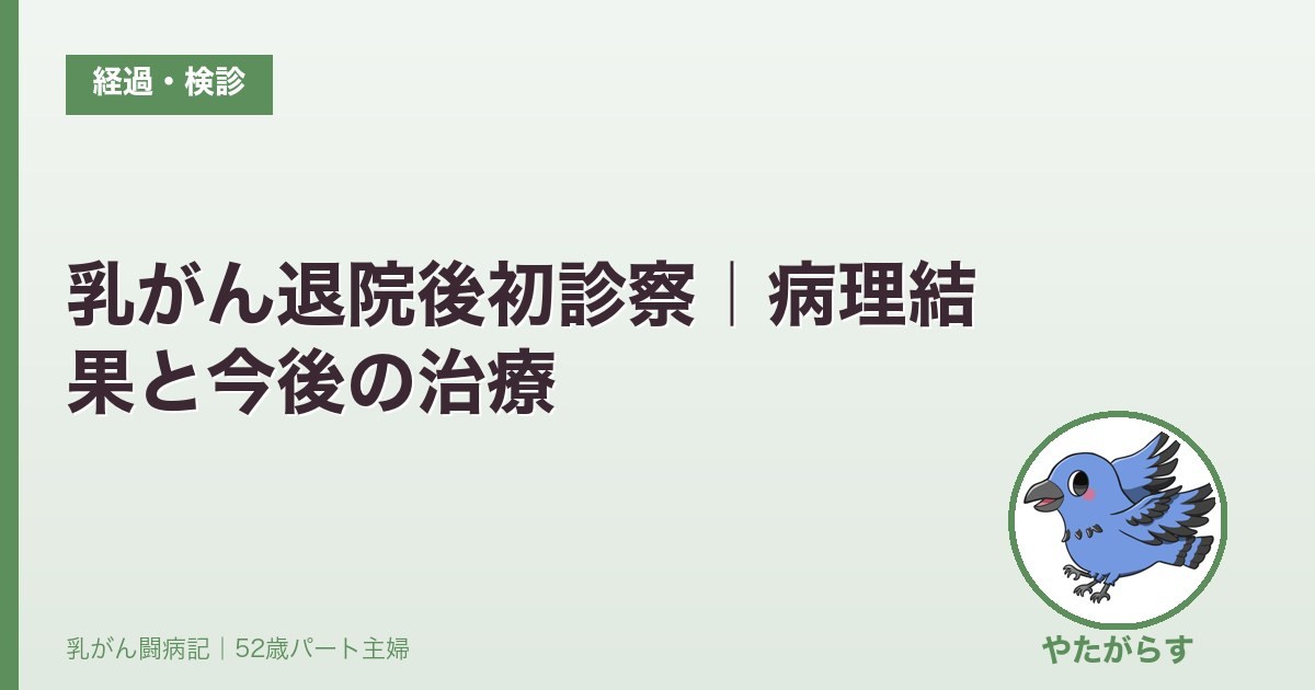 2023年12月18日に手術を終え、年明けすぐ術後1か月検診と病理結果の説明がありました。HER2陰性・ホルモン受容体陽性ということで、抗がん剤+ホルモン療法の方針が固まったタイミングでした。